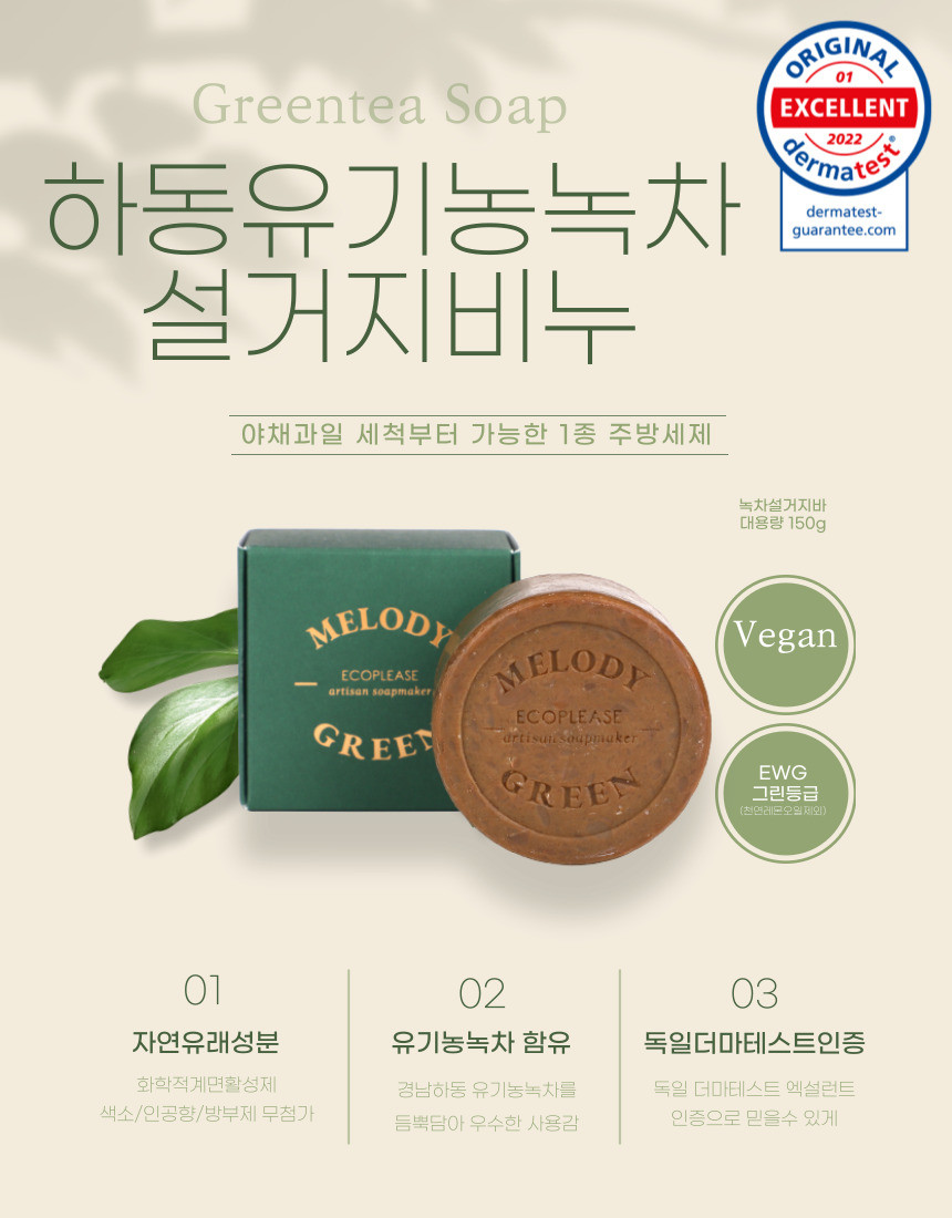 | 제품에 사용된 화학물질 명칭 | 품목 및 제품명:멜로디그린 설거지비누 / 용도 및 제형:1종주방세제 / 제조연월:제품에별도표기 / 유통기한:제품에별도표기 / 중량·용량·매수·크기:150g 3개 총 450g / 효과효능:1종주방세제 / 수입자:해당사항 없음 / 제조국:대한민국 / 제조자(사):제품에별도표기 / 어린이 보호포장 대상 제품유무:해당없음 / 제품에 사용된 화학 물질 명칭:해당없음 / 사용상 주의사항:해당없음 / 안전기준적합확인신고번호 또는 안전확인대상 생활화학제품승인번호:해당없음 |